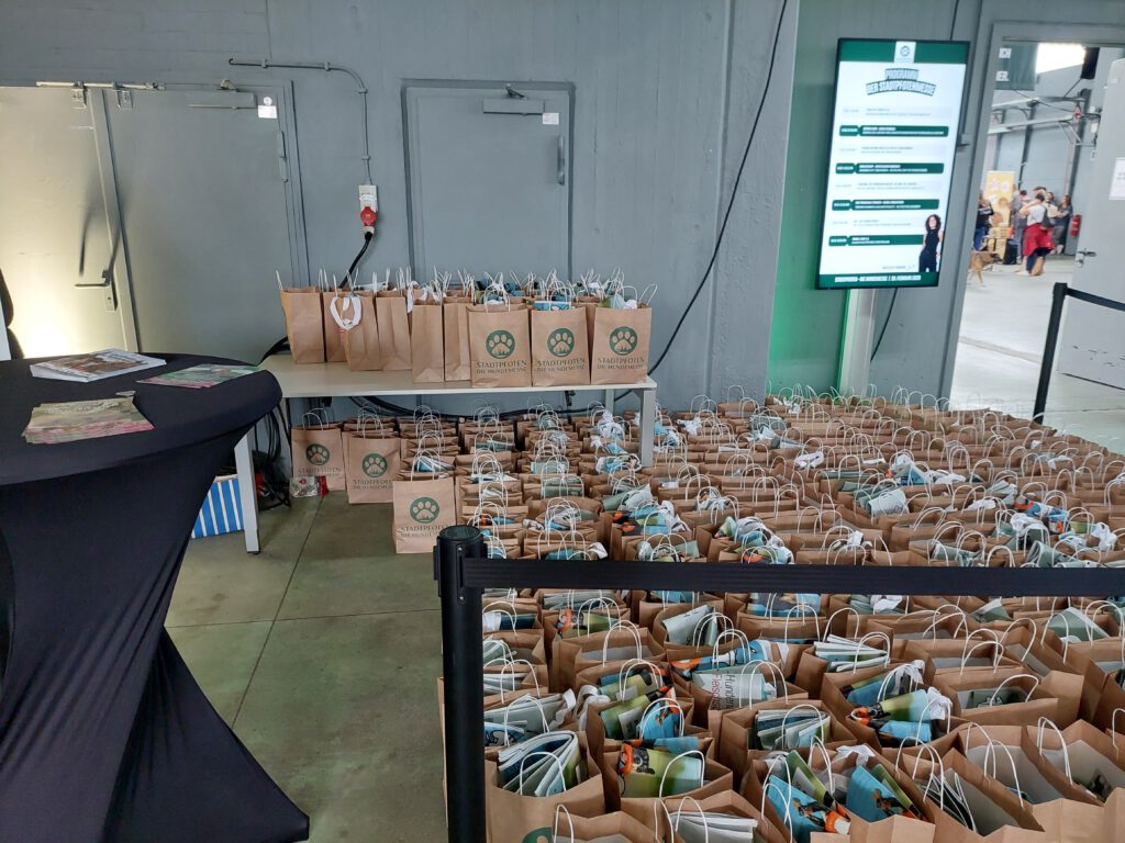 Die Messehalle war klein, überschaubar und hatte ein besonders familiäres Flair. Gemäß den Werten von Nachhaltigkeit, Tierschutz und Innovation wurden die Stände im Vorfelde sorgfältig ausgesucht und vor Ort dementsprechend angeordnet. So hatte man einen abwechslungsreichen Mix von Ständen zu Hundefutter, Spielzeug, Zubehör und Informationsständen. Überall standen zudem Trinknäpfe für die Hunde und die offenen Türen sorgten für eine gute Durchlüftung, so dass es zu keiner stickigen Luft kam.